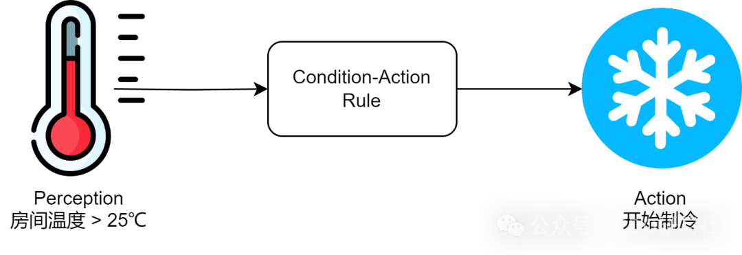 这个演进的起点,是那些结构最简单的反射智能体(Simple Reflex Agent)。它们的决策核心由工程师明确设计的“条件-动作”规则构成,如图1.2所示。经典的自动恒温器便是如此:若传感器感知的室温高于设定值,则启动制冷系统。