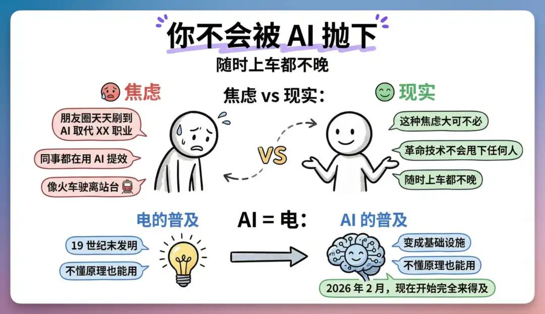 所以,随时上车都不晚。今天是 2026 年 2 月,现在开始完全来得及。说真的,AI 应用这件事一直在路上。