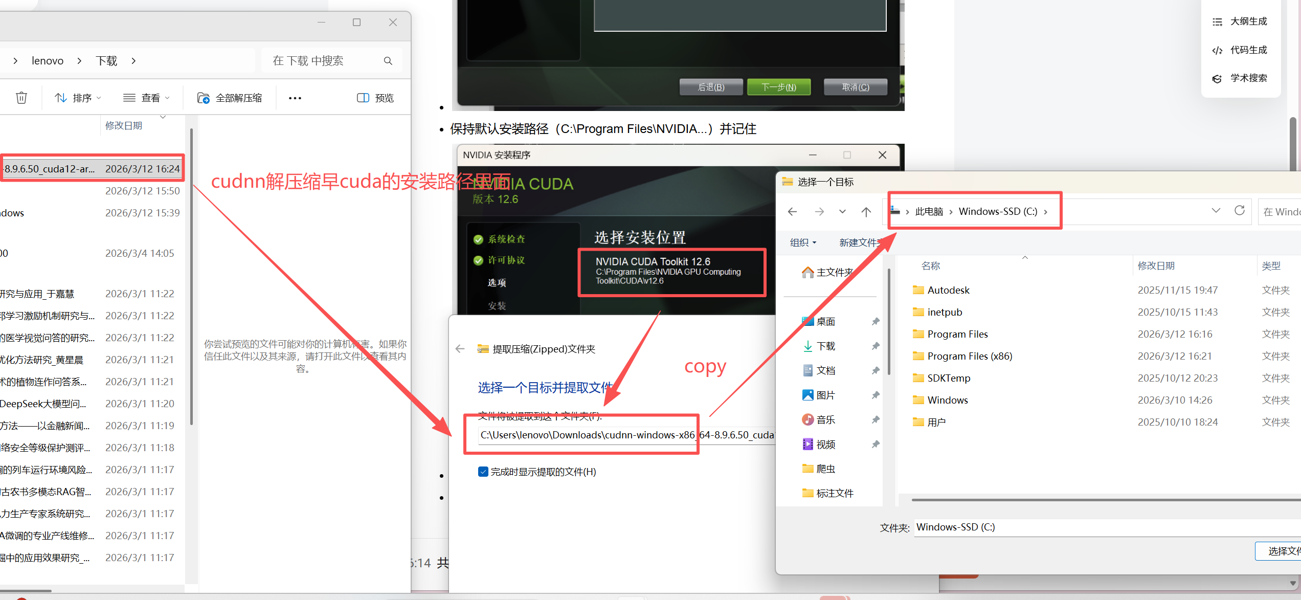 - 将下载的zip cudnn文件解压并放到cuda对应版本下