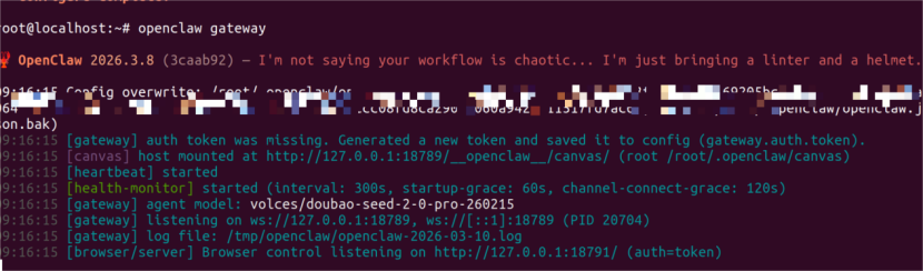 配置好openclaw后,接下来就是启动openclaw,输入openclaw gateway