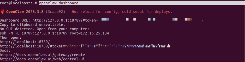 之后在另一个终端中输入openclaw dashboard
