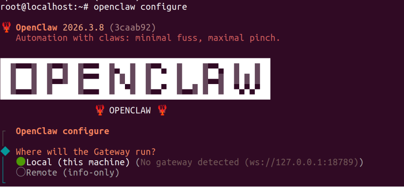 输入openclaw configure