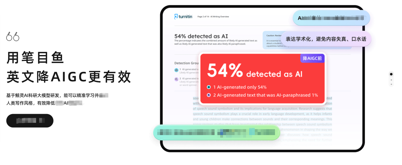 实测体验:如果你对专业性要求很高,用这个比较合适。我测了一篇有很多专业名词的文章,它改完把专有名词都保留下来了,没有出现常识性错误。而且它能和Turnitin的结果做对比,对于要求高质量降AI率的同学来说,用起来比较放心。