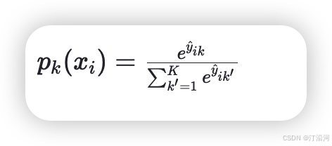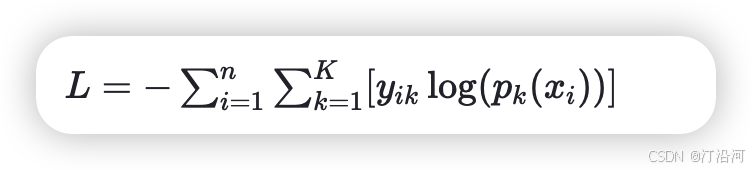 - 𝑦𝑖𝑘 是one-hot编码的目标变量,如果样本 𝑖属于类别 𝑘,𝑦𝑖𝑘=1,否则为0;