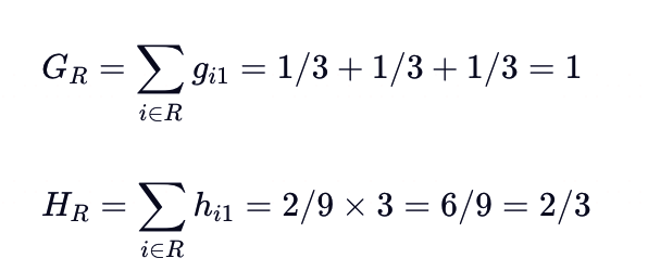- 𝐺𝑅 和 𝐻𝑅 是右子树中所有样本的梯度和Hessian和;