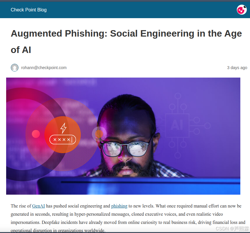 在网络安全的漫长演进史中,钓鱼攻击(Phishing)始终是最持久且最具破坏力的威胁向量之一。传统钓鱼攻击依赖于模板化的话术与大规模的盲发策略,其成功率受限于内容的粗糙度与接收者的警惕性。然而,随着生成式人工智能(Generative AI)技术的成熟与普及,这一格局正在发生根本性逆转。Check Point Research近期发布的关于“AI时代增强型钓鱼与社会工程学”的深度报告指出,攻击者正以前所未有的速度整合AI工具,将原本需要高超写作技巧与大量时间投入的社会工程学攻击,转化为可自动化、规模化且高度精准的工业级作业。