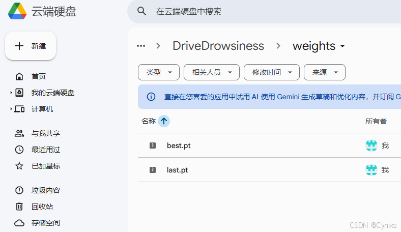 训练完成后,可以在Google Drive的模型路径下找到训练好的权重文件,选择使用最优的权重系数:best.pt,可以直接下载到本地。