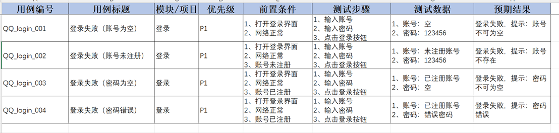 - 优先级:表示用例的重要程度或者影响力P0~P4(P0最高(核心用户使用频率最高))