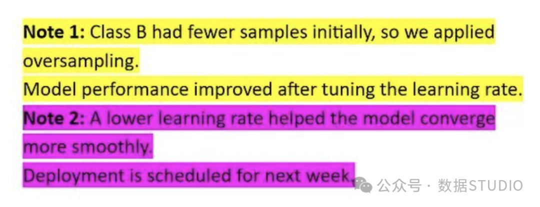 基础分块示例**适用场景:**该方法适用于结构相对规整且以换行符均匀分隔的文本数据,包括笔记文档、项目列表、FAQ文档、聊天记录或转录文本等,特别是当每行文本都包含完整语义单元的情况。**技术要点:**需要注意文本行长度的平衡。过长的文本行可能超出大语言模型的token限制,而过短的文本行则可能导致上下文信息不足,影响模型的理解和生成质量。代码实现: