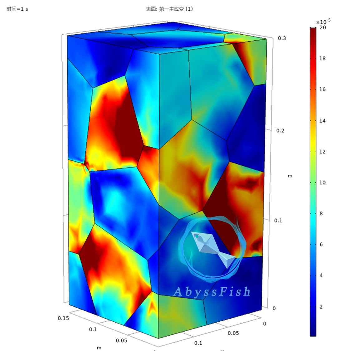 通过基于三维Voronoi算法的三维泰森多边形晶格分布构建Comsol三维晶体轴压模拟模型,我们能够更深入地了解晶体微观结构对其宏观力学性能的影响,为材料设计和优化提供有力的支持。