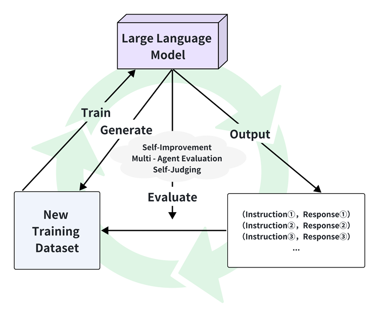 - 自演化数据生态:构建模型的自演化机制。①自迭代优化:利用当前模型生成训练数据;②动态评估反馈:对模型训练过程进行实时监控与调整;③大语言模型作为评判器:基于反馈的优化方法。