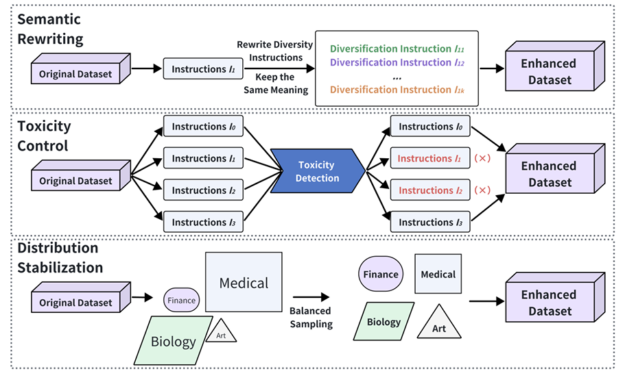 提升数据质量是最大化大语言模型后训练效果的关键。通过语义精修、毒性控制和分布稳定化三大手段,提升训练数据的信息性、安全性和鲁棒性。