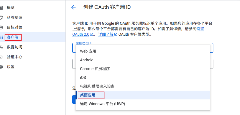 前往“凭据”页面,点击“创建凭据” -> OAuth 客户端 ID。