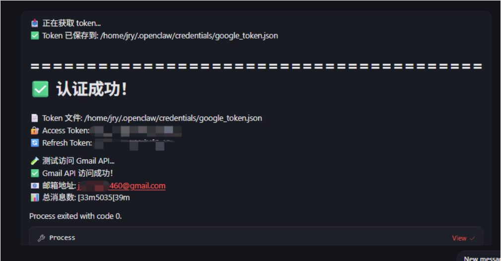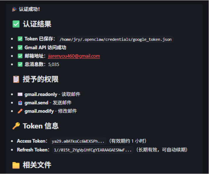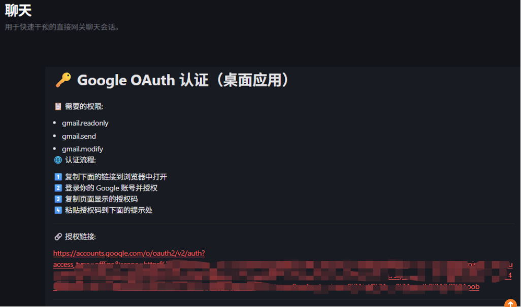 点击链接后会有一个授权码,给到openclaw即可,自行配置