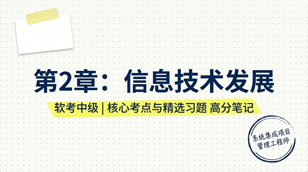 在软考中级《系统集成项目管理工程师》的考试中,第2章“信息技术发展”是综合知识的绝对核心得分区。本章涵盖了网络、存储、安全以及大量新一代信息技术(云计算、大数据、物联网、5G、区块链、AI等),预计在上午单选题中将占1~3分左右。该章节概念繁多,建议考生作为最高优先级进行记忆和背诵。