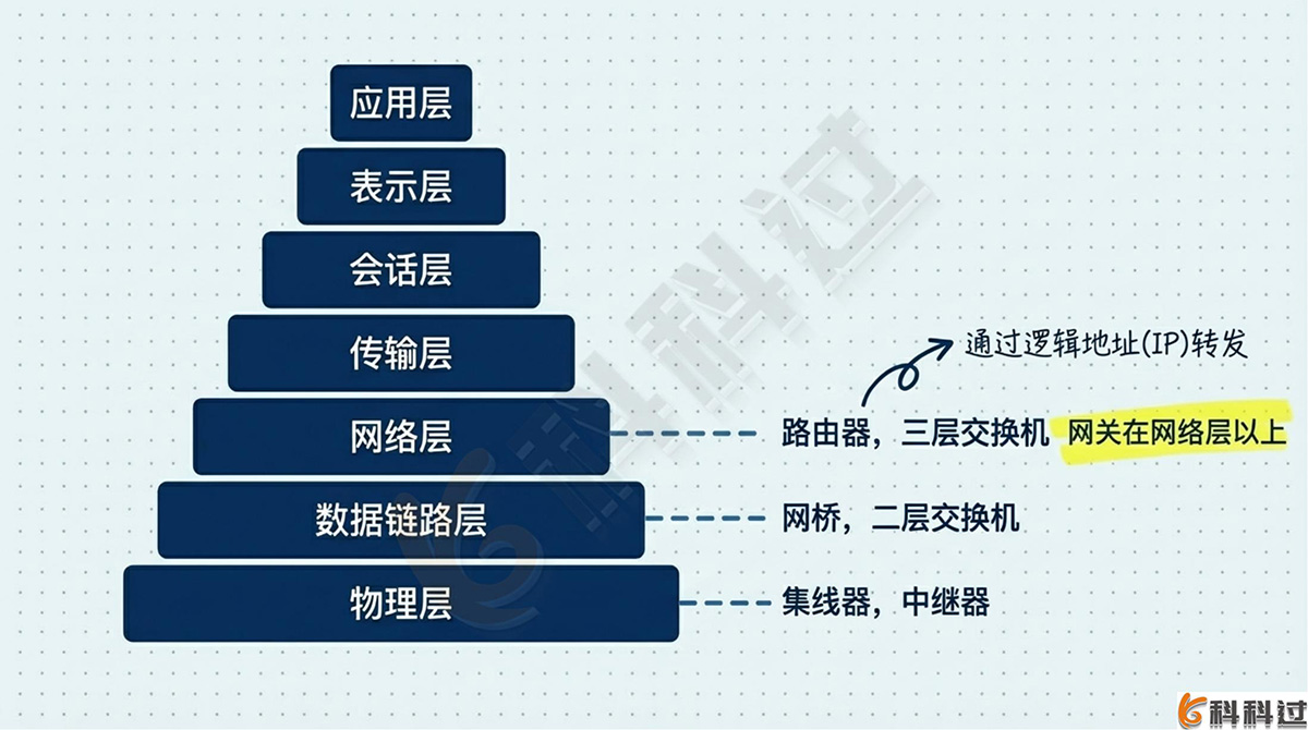 - 应用层:网关(网络层以上)