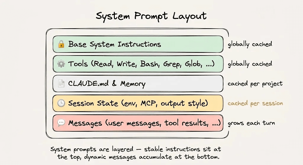 但原则体现在细节中。不要将时间戳注入系统提示,不要打乱工具定义,会话期间不要切换模型,不要修改缓存断点上游的任何内容。