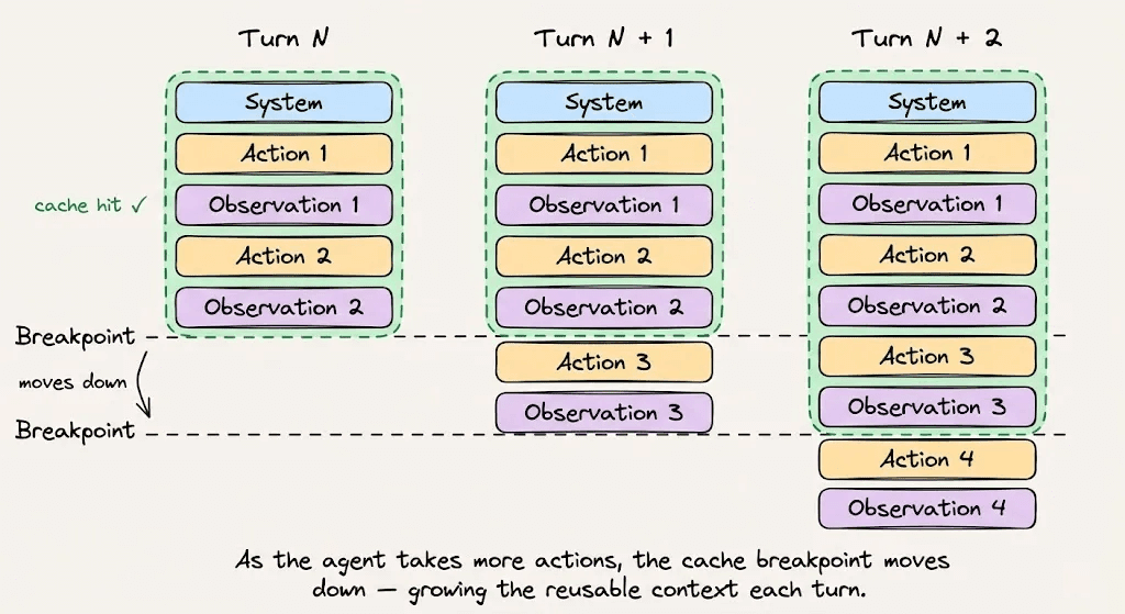 在Anthropic API上启用自动缓存后,缓存断点会随着对话增长自动推进。没有它,你需要手动跟踪Token边界,而错误的边界意味着完全错过缓存。