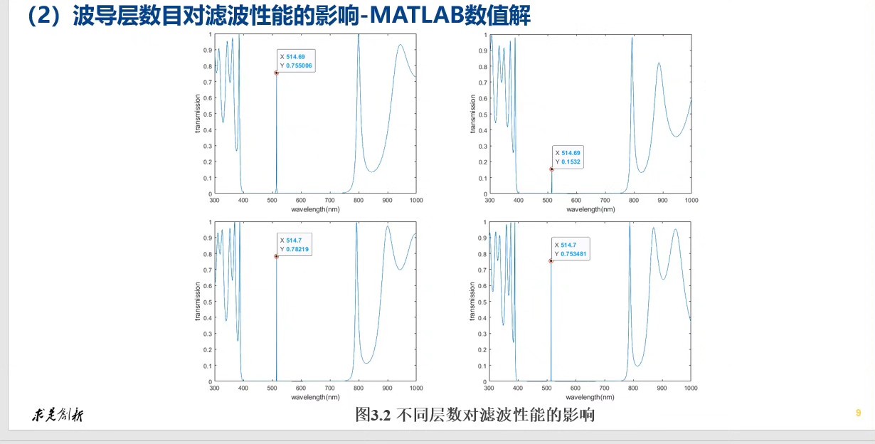 - 结果分析:说明如何根据计算得到的反射率和透射率数据来评估滤波器性能,比如什么样的反射率和透射率数值意味着更好的超窄带滤波效果,以及怎样通过调整参数来优化性能。