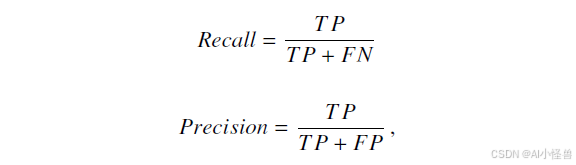 为了评估模型在 CONDIS++ 上的性能,将使用召回率和精确率指标: