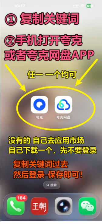 ②然后再打开手机「·夸·克·A·P·P 或者 夸·克·网盘·A·P·P」