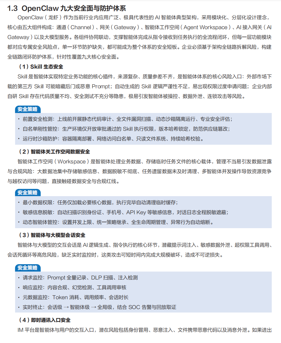 安全使用指南建议,企业应优先采用私有化云端集中部署,避免在员工个人终端上运行核心智能体能力。