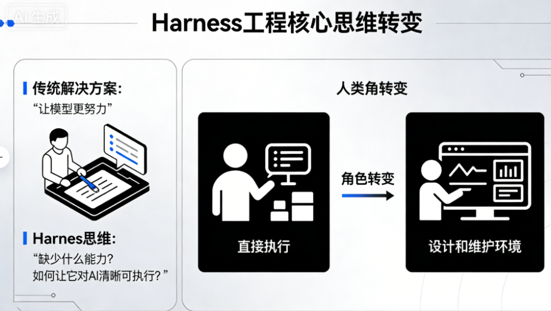 最近,OpenAI 分享了一项引人深思的实验结果:他们的团队用零行手写代码构建了一个完整的软件产品。五个月时间,一百万行代码,全部由 AI 生成。这个实验揭示了一个重要趋势:当 AI 成为代码的主要生产者时,工程团队的核心工作就从编写代码转变为设计环境、明确意图、构建反馈循环。OpenAI 将这种新的工程范式称为 “Harness 工程”。