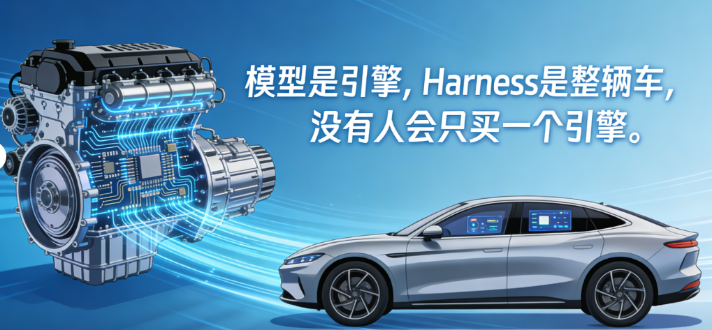 要理解 Harness 的重要性,YC 社区里有一个极其精准的隐喻:模型是引擎,Harness 是整辆车,没有人会只买一个引擎。这个比喻背后反映出一个更深层的现实:在 AI Agent 的世界里,模型本身已经不再是唯一的竞争力。真正决定系统能力的,是围绕模型构建的那套完整运行机制。