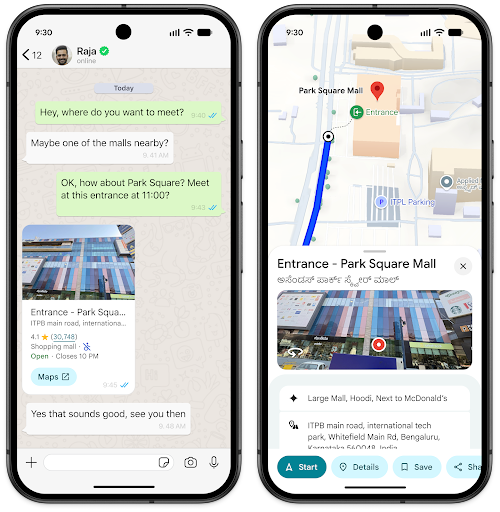 在即时通讯应用中分享特定入口,即可在谷歌地图显示精确的建筑物轮廓和到达点