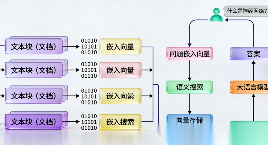 RAG(检索增强生成)是当前最流行的LLM应用模式之一。它允许模型基于自有数据(如文档、数据库)回答问题,显著减少幻觉。本节我们将基于Azure Cosmos DB(或其模拟器)作为向量数据库,结合Ollama本地模型,构建一个文档问答系统。