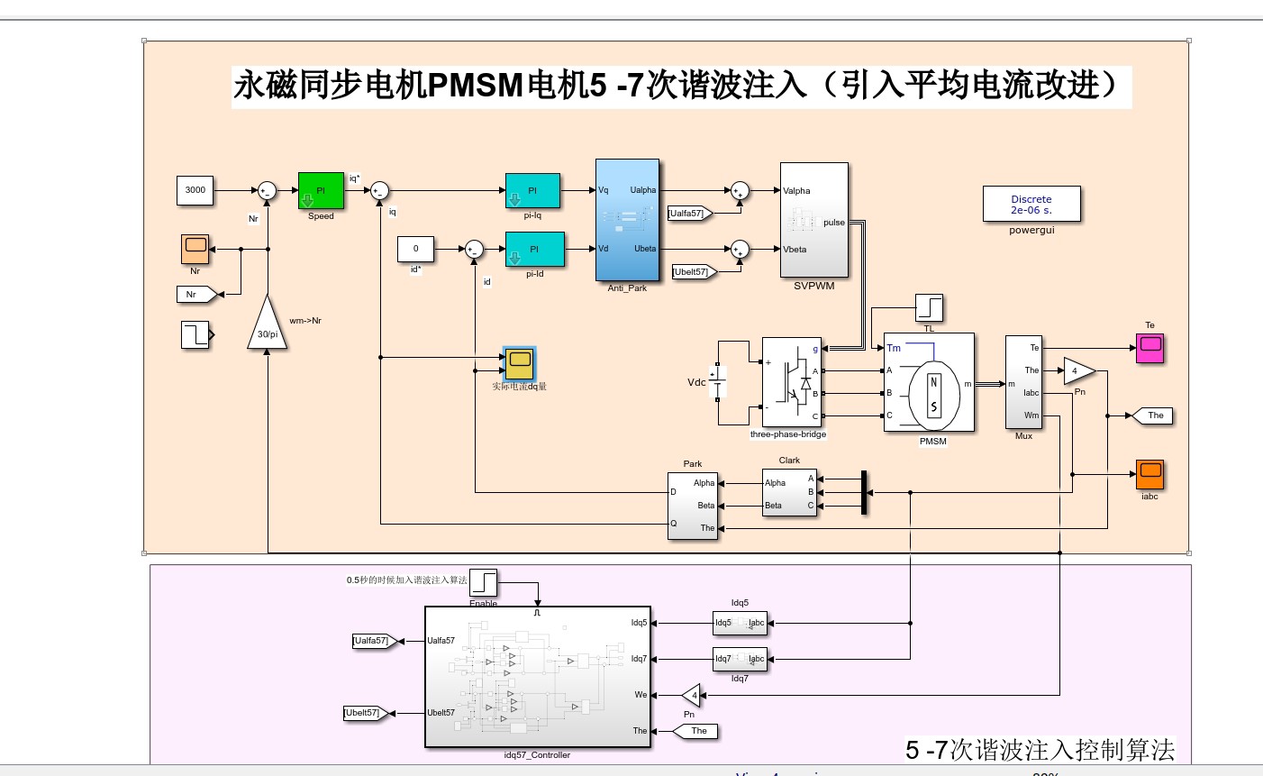 永磁同步电机PMSM 5 - 7次谐波注入降低转矩脉动实践