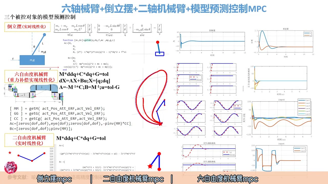 六自由度机械臂mpc模型预测控制+倒立摆+二自由度机械臂