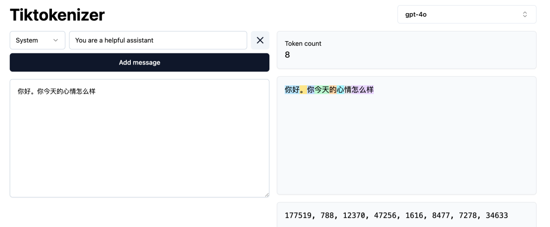 例如,在下图这个案例中,既有“你”、“的”这样的独立汉字用一个数字ID来表示,也有“你好”、“今天”这样的日常短语用一个数字 ID 来表示。