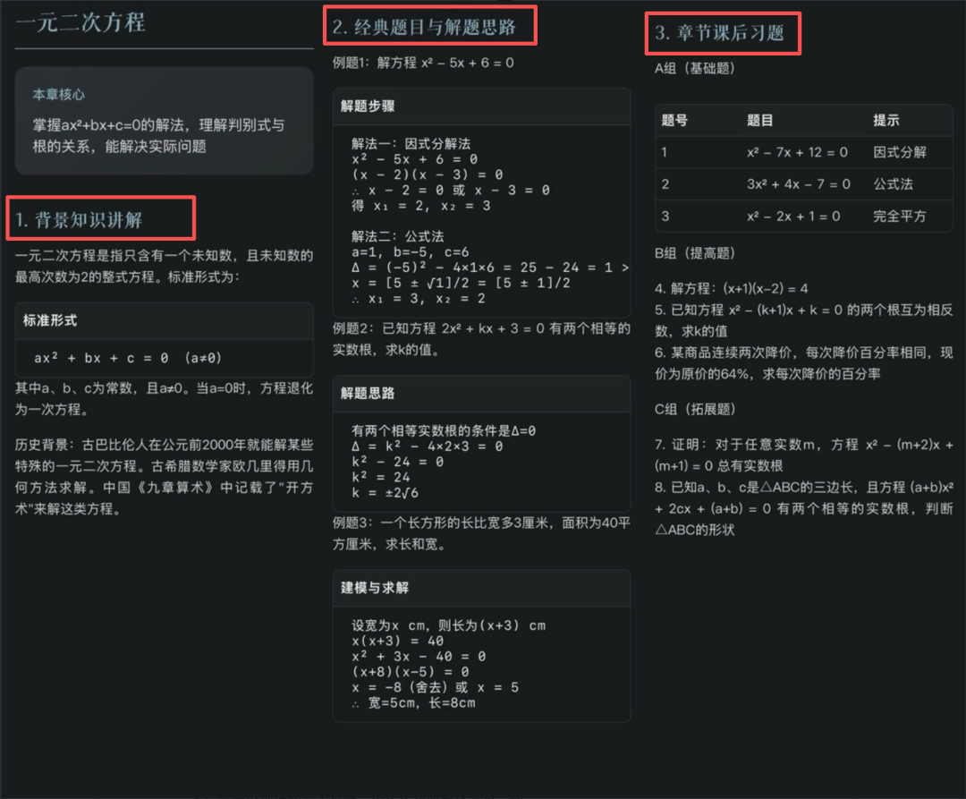 回想我们小时候的课本,每个知识点的章节讲解,都包含三个步骤: