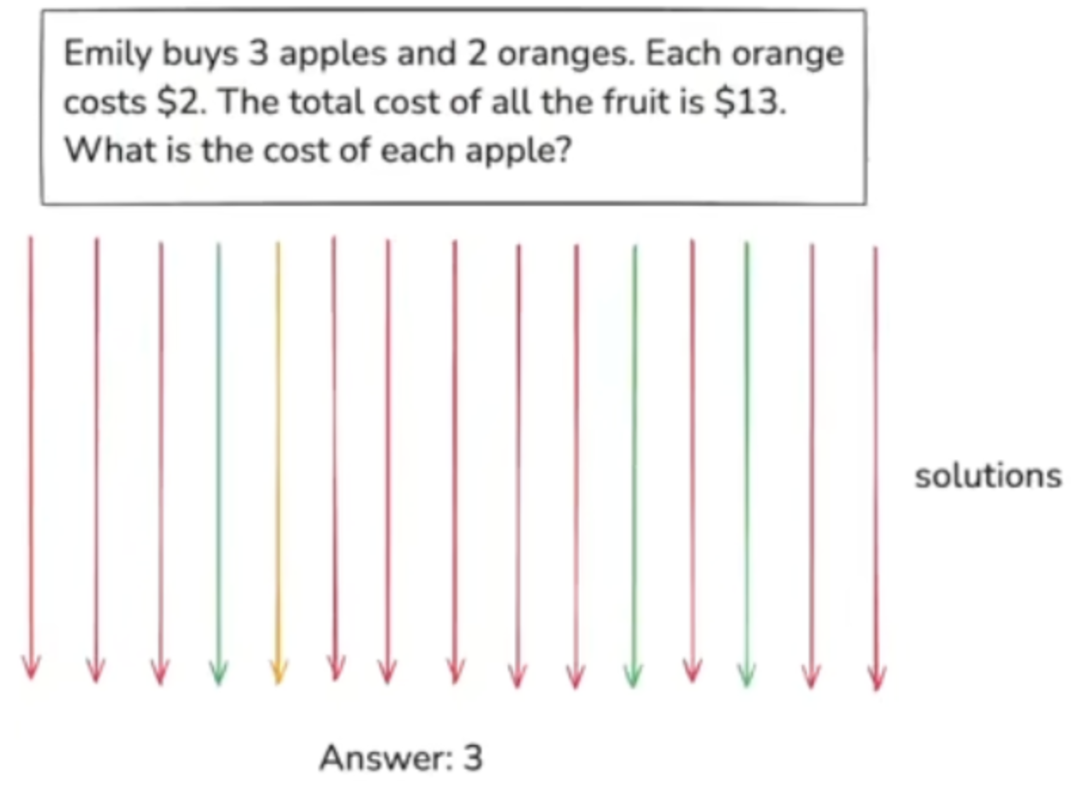 而这就是我们这一步需要做的事情。我们只给到题目与答案,然后让模型自己摸索出最适合自己的解法。