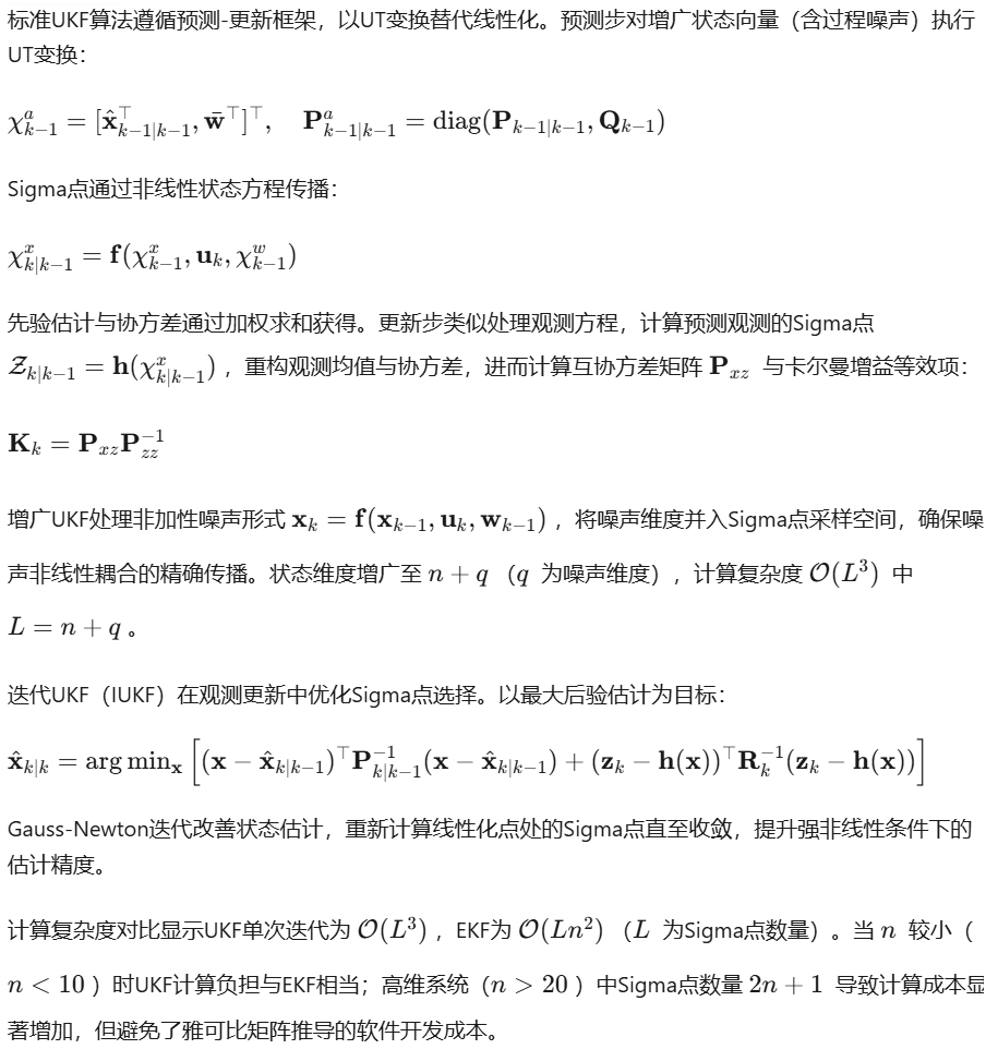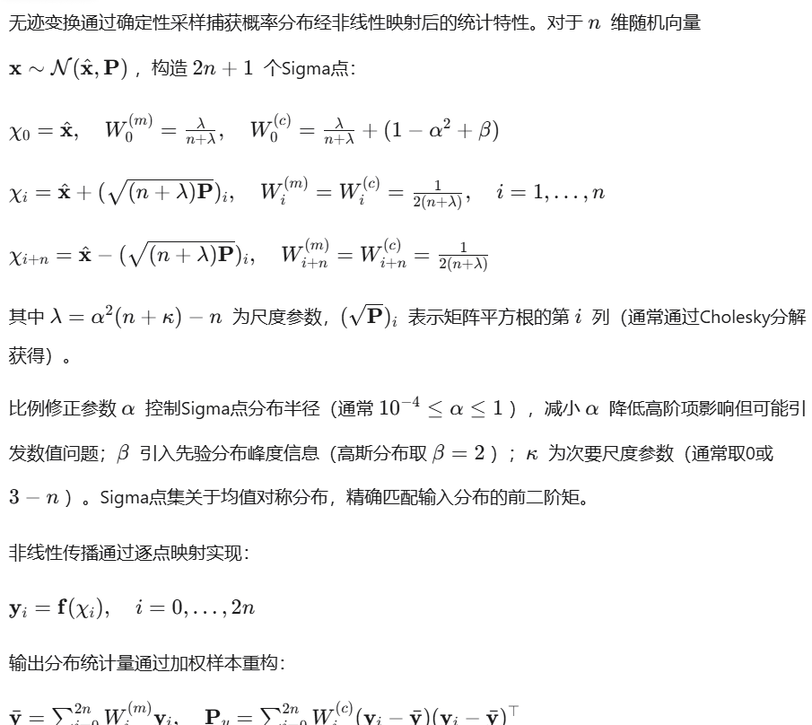 高阶无迹变换通过扩展Sigma点集匹配更高阶矩。五阶矩匹配采用 个点,或利用Richardson外推结合不同尺度参数的UT结果,提升偏度与峰度估计精度,适用于非高斯分布传播。