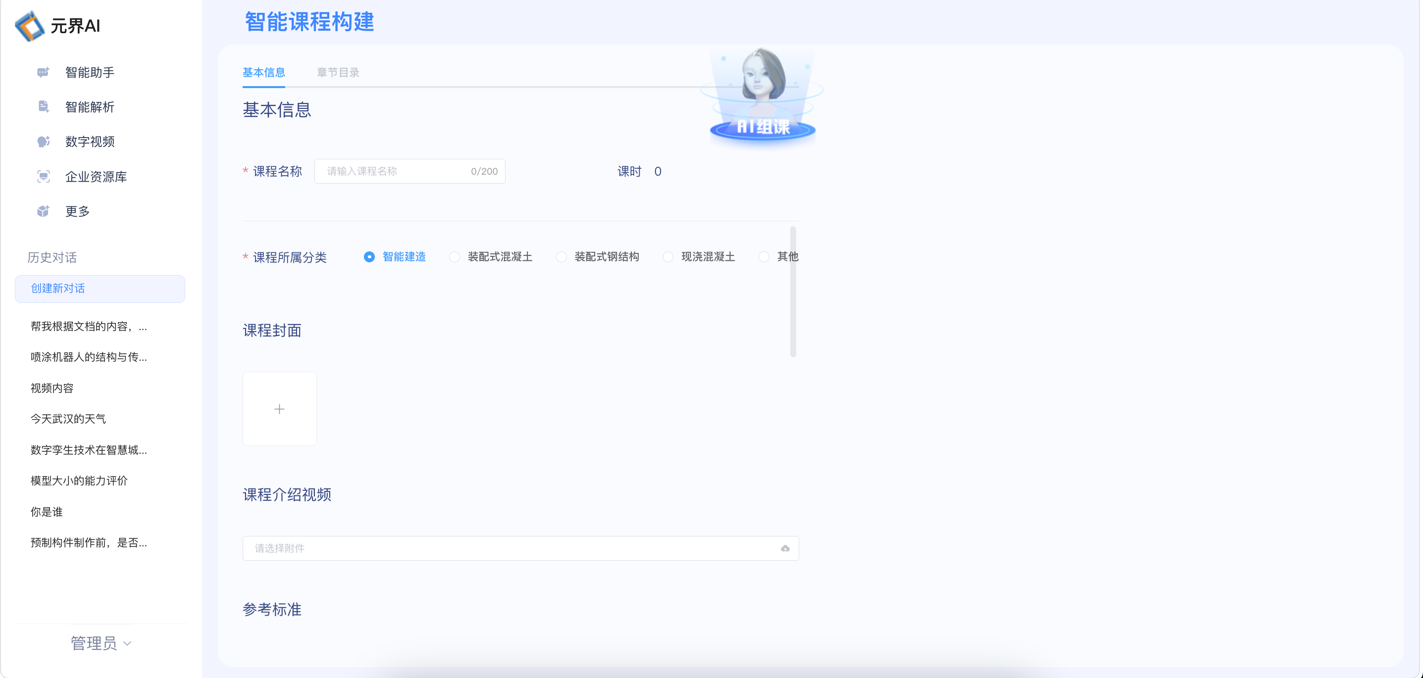 智能助手:作为教育领域专属 AI 问答入口,支持联网搜索、知识库检索、创意写作等功能,可精准解答课程设计、在线教学、智慧课堂应用等专业问题,为教育从业者提供高效知识获取与方案咨询服务。智能解析:覆盖文档与课件双维度解析能力。上传 PDF/Word 文档可自动生成结构化摘要与知识点索引;上传教学课件则能识别关键知识点、提取教学重点,输出数字化解析报告,大幅提升教育资料处理效率。数字视频:提供个性化数字人内容生产能力,支持上传视频生成专属 AI 数字人模型,或直接输入内容、选择预设数字人生成讲解视频;同时兼容 PPT 数字人讲课功能,自动解析 PPT 教学内容并匹配数字人,一键生成完整教学视频。智能课程构建:面向各类教育场景,可输入课程名称、选择专业分类(基础教育、职业教育、高等教育等),自动生成课程标准、教学目录与配套资源,实现课程内容的快速搭建与标准化输出,赋能教育人才培养。企业资源库:沉淀课程大纲、教学资料等生成内容,支持预览与下载,形成教育类企业专属知识资产池,实现知识的复用与传承。