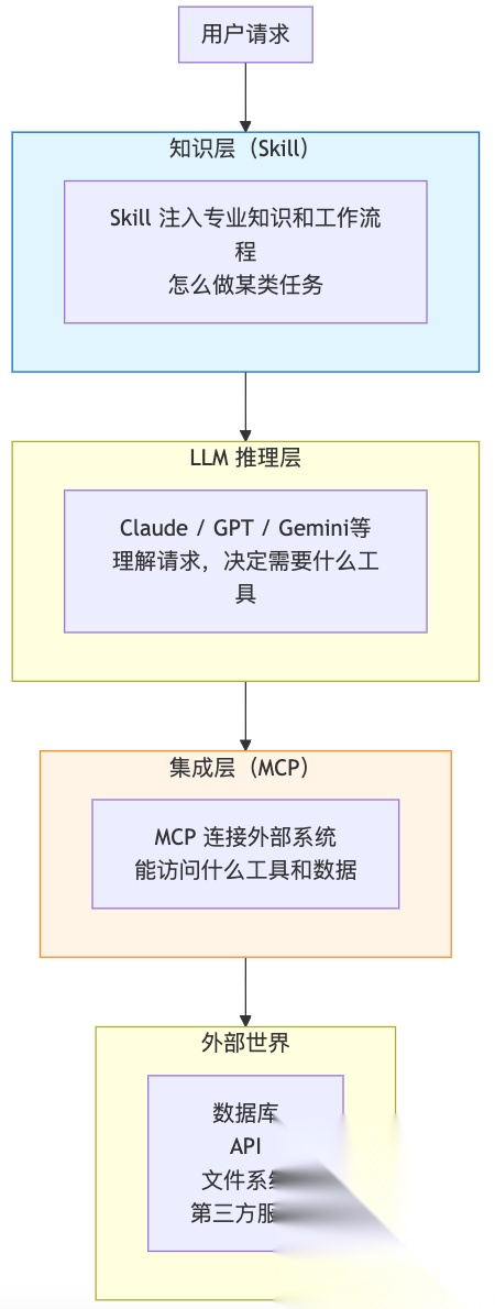 - 理解架构层级:MCP在集成层,Skills在知识层