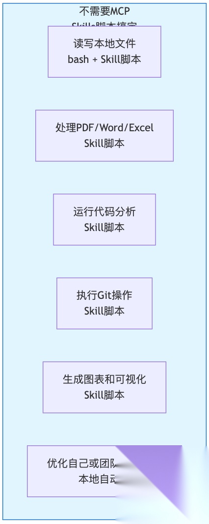 这正是Skills的设计方向:用脚本封装能力,用渐进式披露管理知识,最大限度减少上下文消耗。