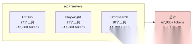有开发者配了7个MCP Server,还没开始对话,上下文就被吃掉了67,000 tokens——占AI上下文窗口的33%。更夸张的案例是82,000 tokens,占41%。