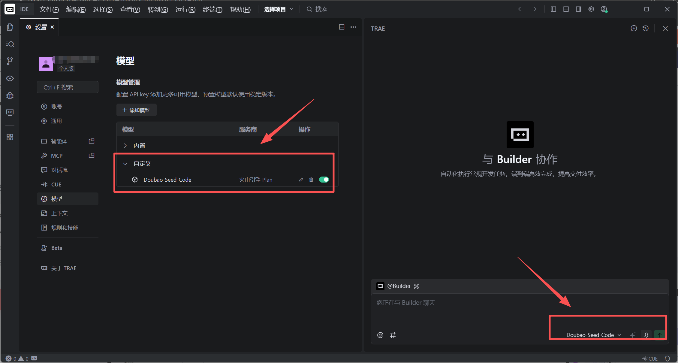 3 TRAE-个人版 如何配置使用方舟 Coding Plan