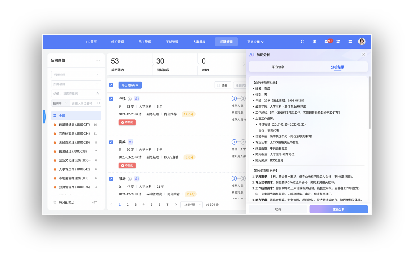 科技转型加速了AI技术人才和复合型高端人才的需求增长,市场竞争激烈且人才供应有限,央企在招聘这类人才时面临压力。红海云的智能招聘技术改变了传统招聘方式,将技术与招聘过程有机结合。平台能够运用AI分析简历,准确匹配岗位要求,同时利用企业历史数据激活潜在候选人资源,帮助企业及时应对突发的人才需求。平台的智能化、在线化服务也提升了求职者体验,帮助央企树立前瞻性雇主品牌形象,在更大范围内吸引优秀的科技人才。这种招聘模式不仅提高了效率,还为企业带来了更高质量的人才储备,为后续的AI战略实施奠定了坚实基础。