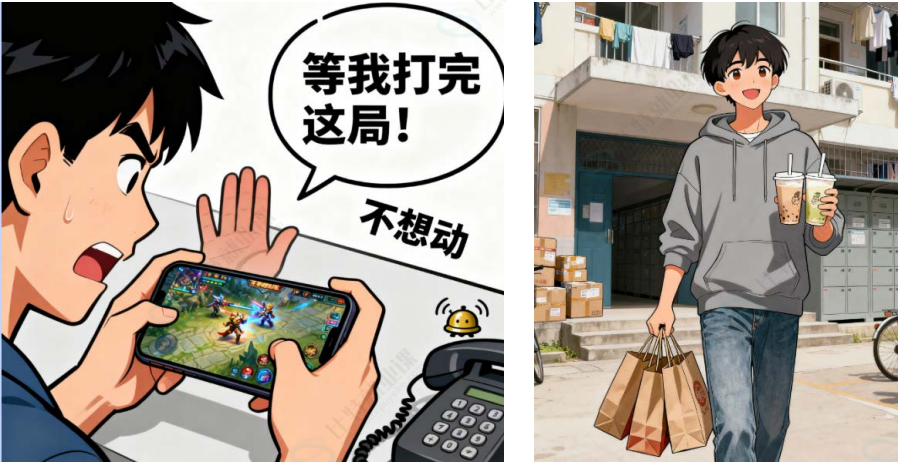 故事背景:你是一名大学生,我们叫你 “小明”。你不想去食堂吃饭,用 “饿了么” App 点了一份外卖。但是学校规定,外卖小哥不能进宿舍楼,只能把外卖放到宿舍区大门口的 “外卖架” 上。问题来了:你正在王者峡谷激战,不想亲自下楼去拿。怎么办?这时,你发现有一个叫 “小闪代拿” 的校园服务,专门帮同学去外卖架取外卖并送到寝室。你需要使用这个服务。