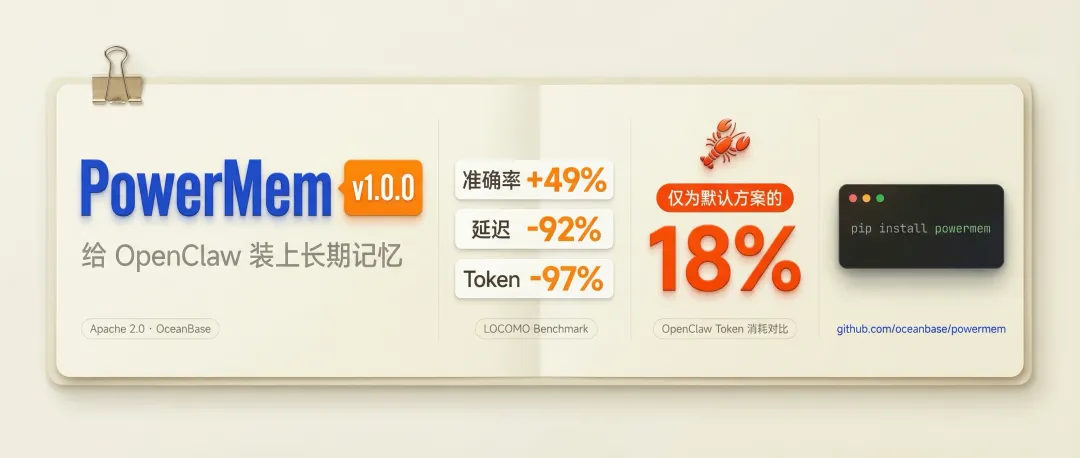 给 OpenClaw 装上长期记忆:PowerMem 1.0.0 正式发布