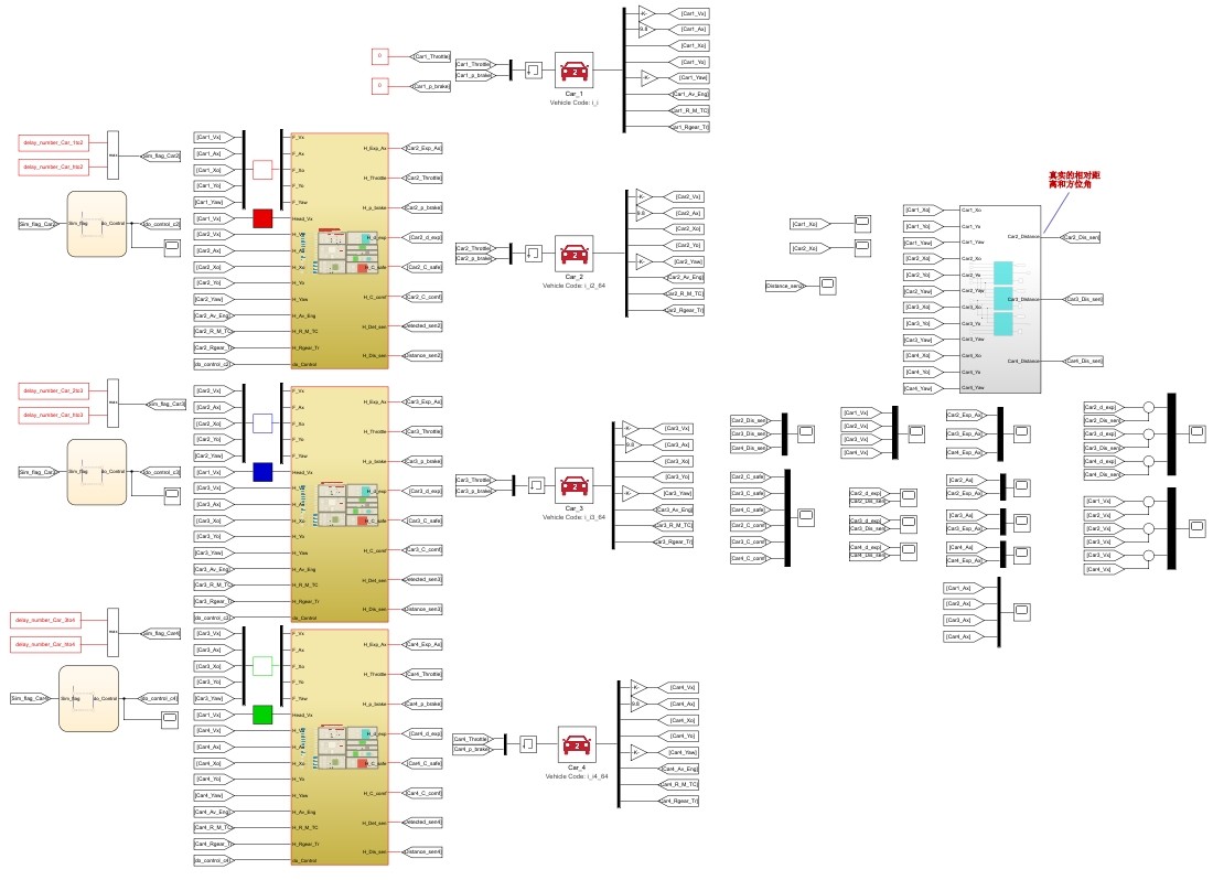 在高速公路上四辆车自动保持紧密队形,前车急刹时整个车队像弹簧缓冲般平稳降速——这种魔法般的协同控制背后,是分层控制器在玩转车辆动力学。今天我们解剖一个用Carsim和Simulink搭建的CACC协同巡航模型,手把手拆解油门刹车背后的控制逻辑。