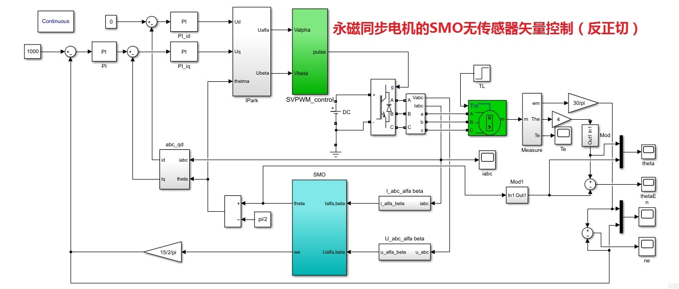 再说说SMO滑模观测器,这玩意儿自带抗干扰属性。模型里常见这种开关函数: