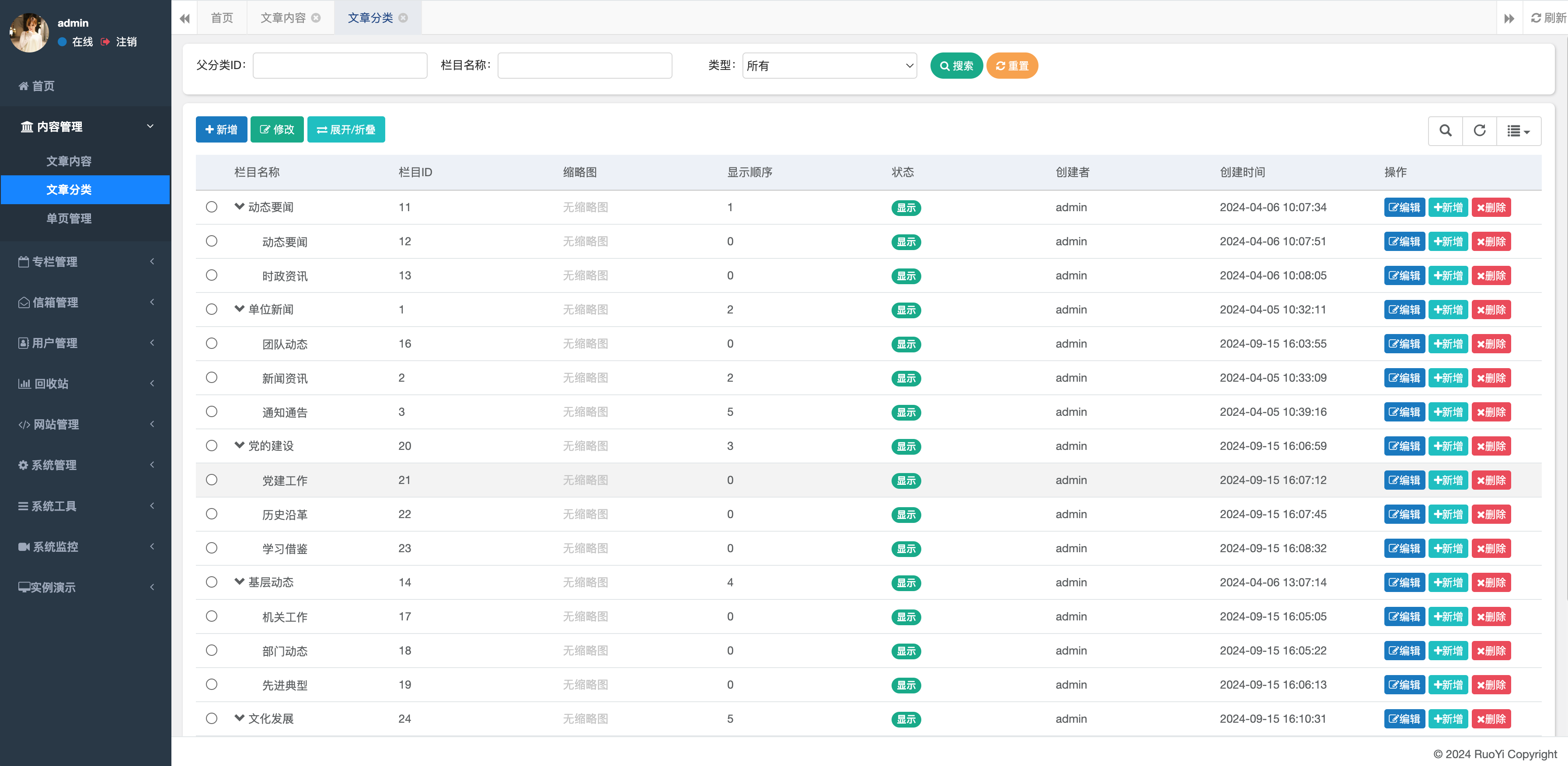 Java建站:基于若依RuoYi的内容管理系统,免费开源的cms管理系统