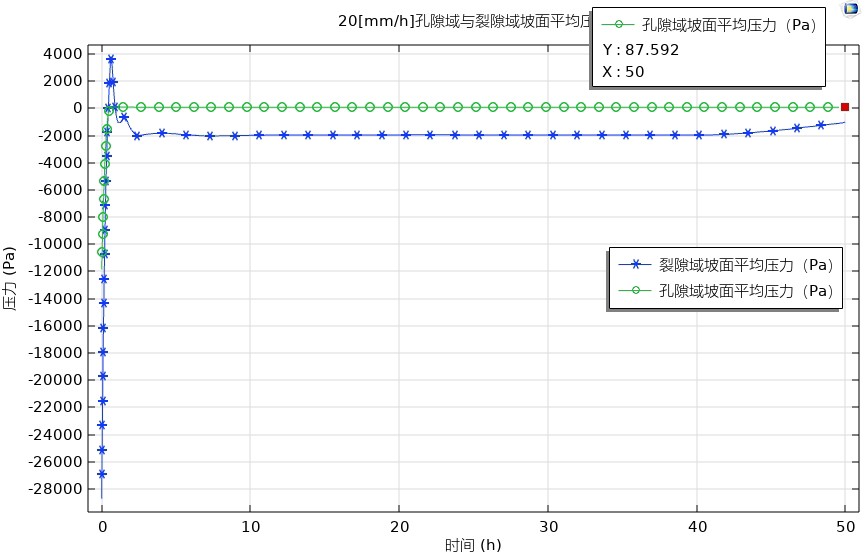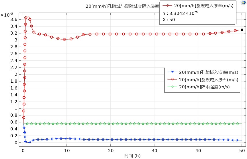 这两个方程像跷跷板,通过Q_exchange(裂隙-孔隙交换项)互相传递水分。原模型直接把坡面边界设为:没饱和时入渗率=降雨强度,饱和后切换为饱和渗透系数。但实测发现这就像让人要么猛喝奶茶要么完全停嘴,太不真实。