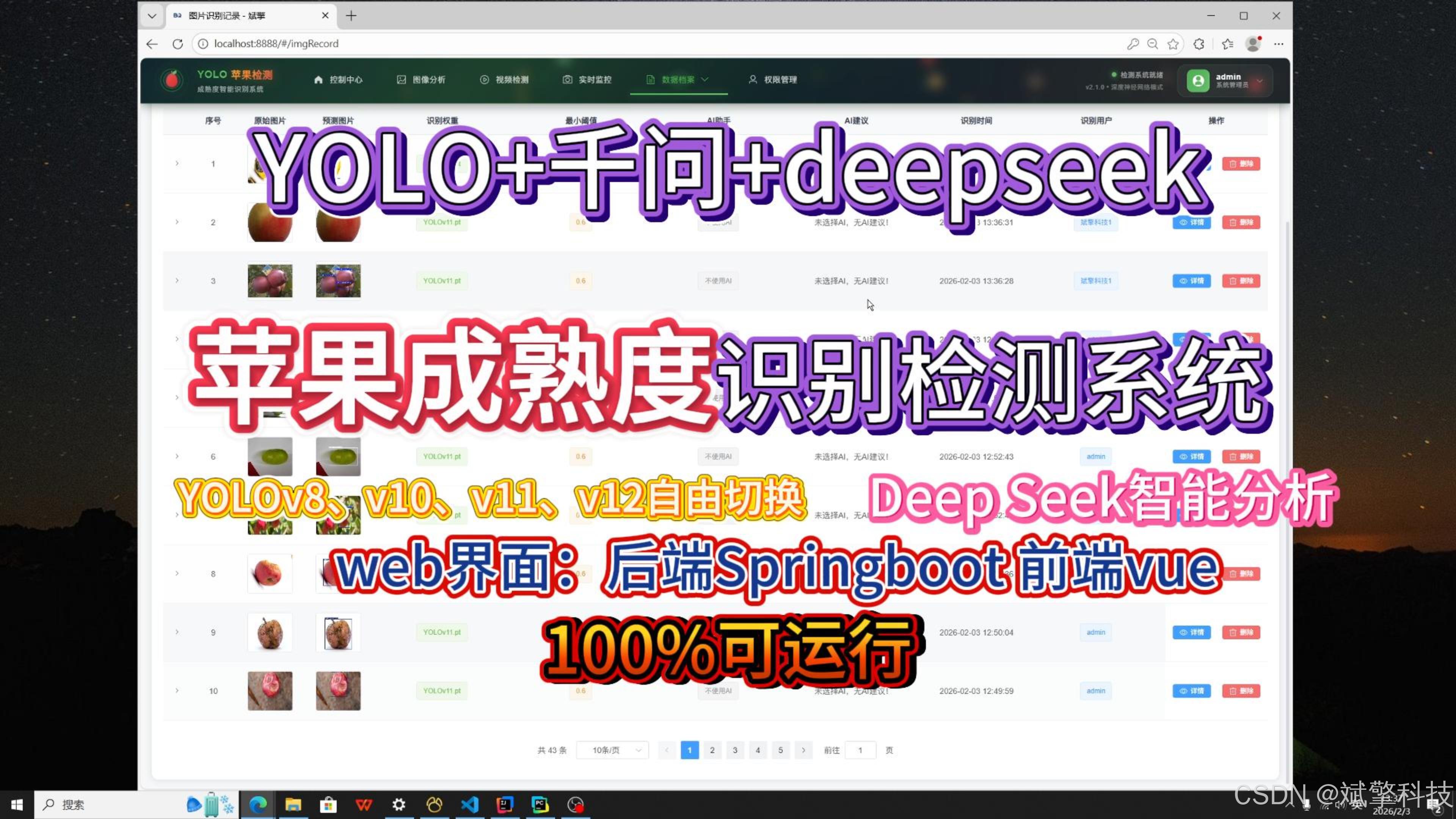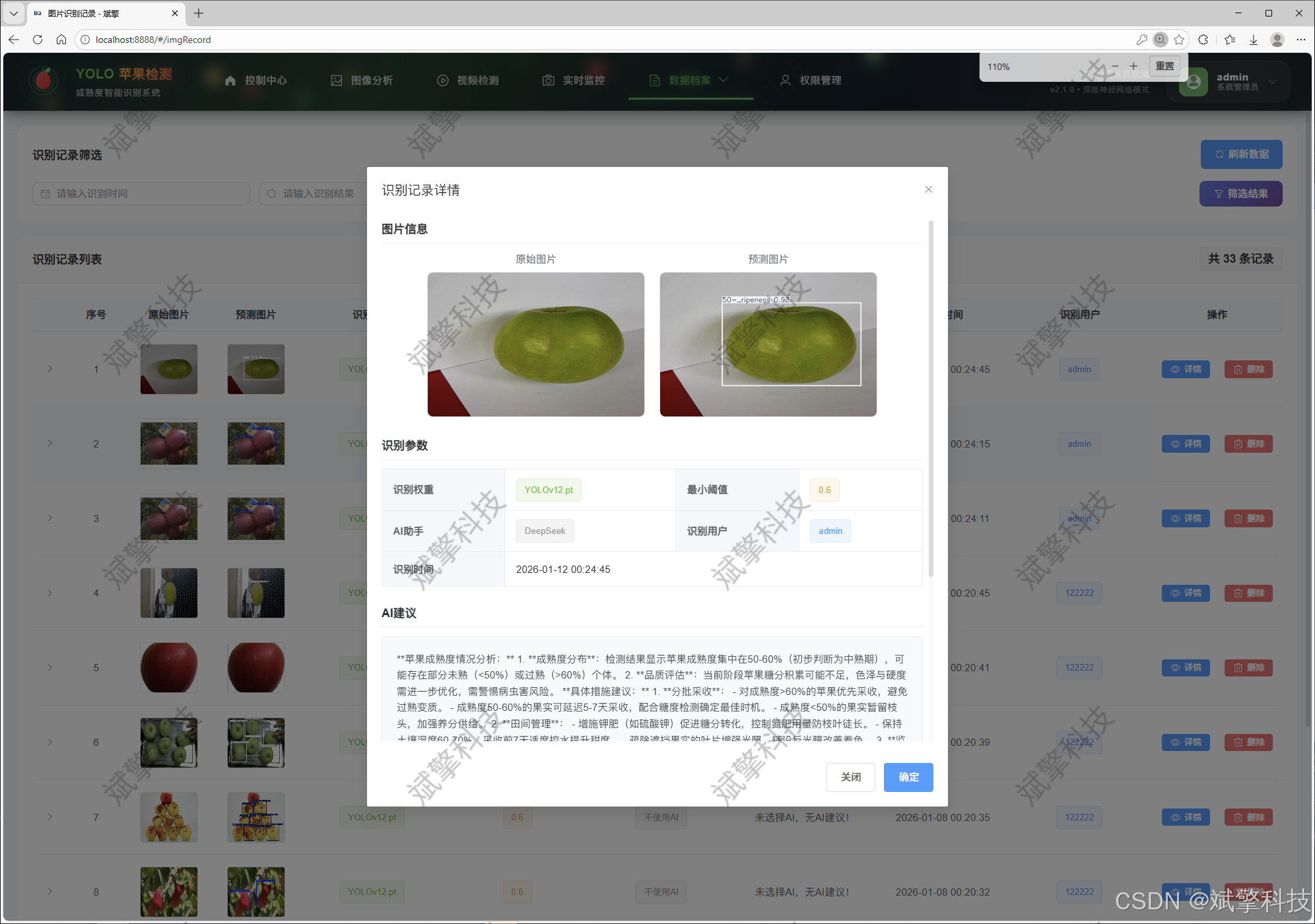 基于YOLOv8/YOLOv10/YOLOv11/YOLOv12与SpringBoot的苹果成熟度检测系统(DeepSeek智能分析+web交互界面+前后端分离+YOLO数据)