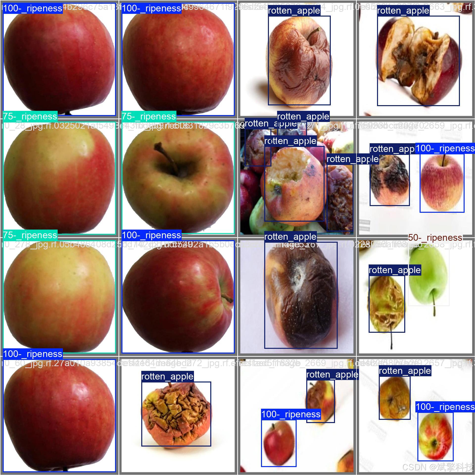 20-_ripeness,50-_ripeness,75-_ripeness,100-_ripeness和rotten_apple五个类别的苹果图像数据集,总计超过2700张图像,并划分为训练集、验证集和测试集,为模型训练与评估提供了可靠的数据基础。 -